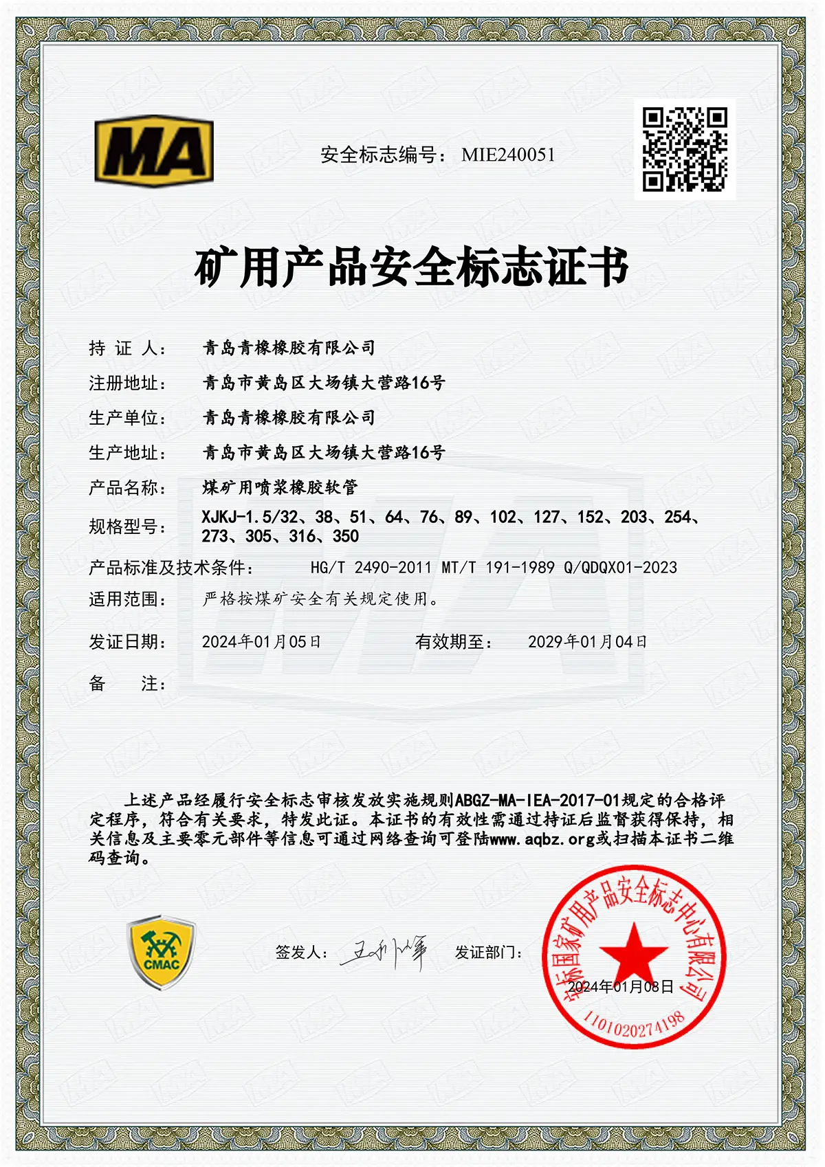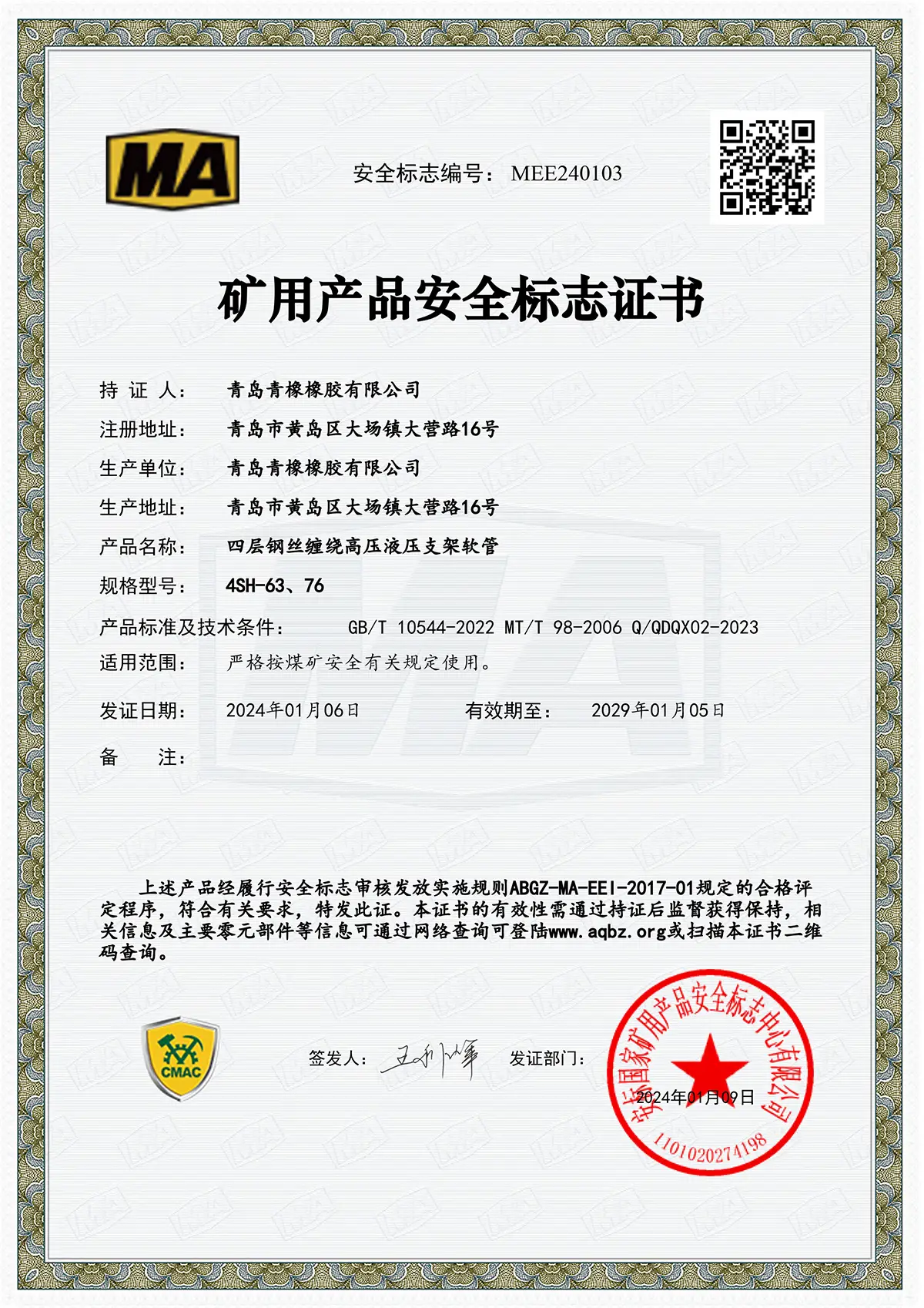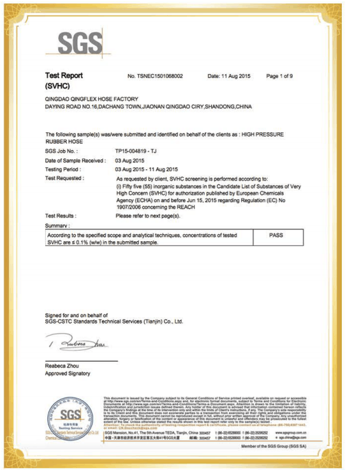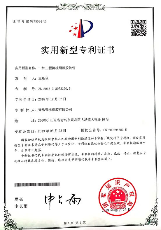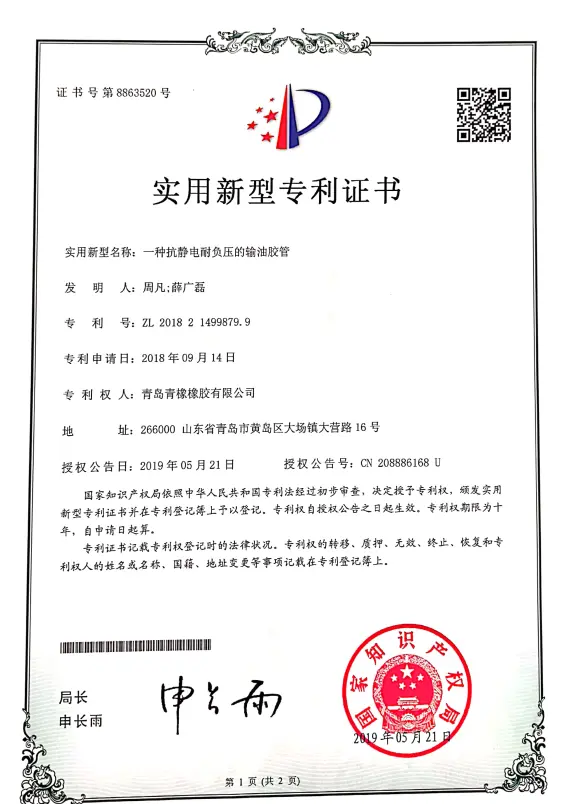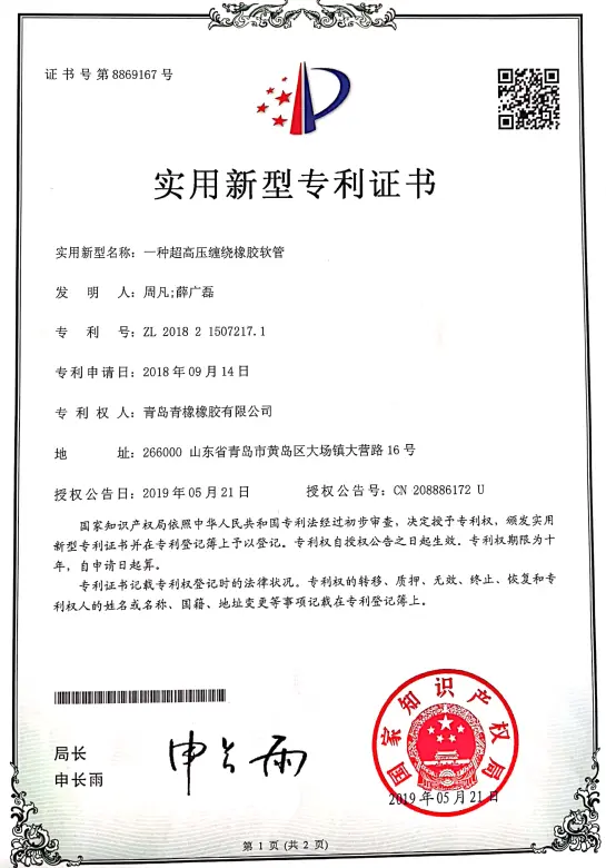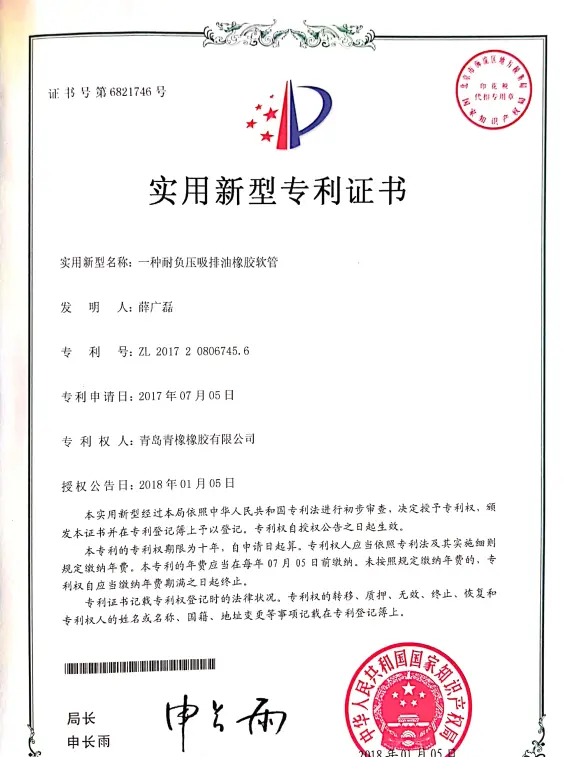 Qingdao Qingflex Hose Factory has the certificates of API 7K, API 16C, API Q1, and is one of the drafting units of Chinese acid frac hose standards