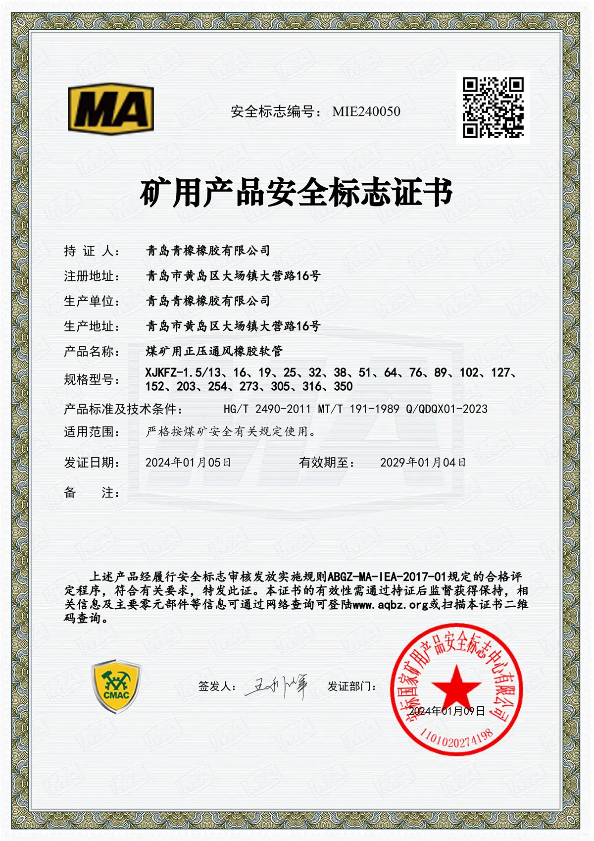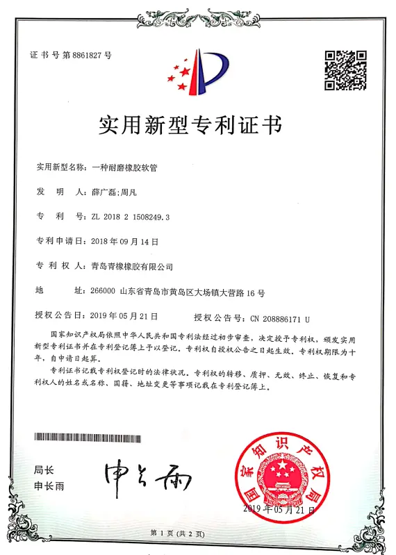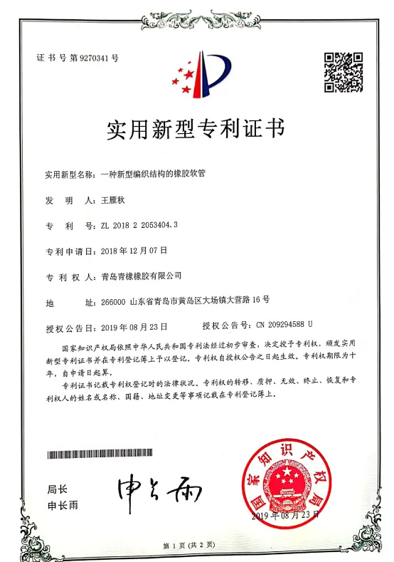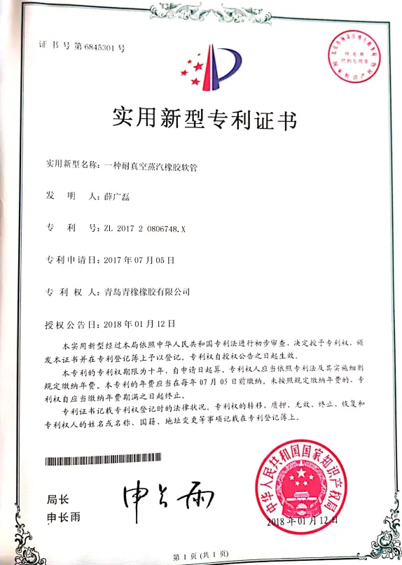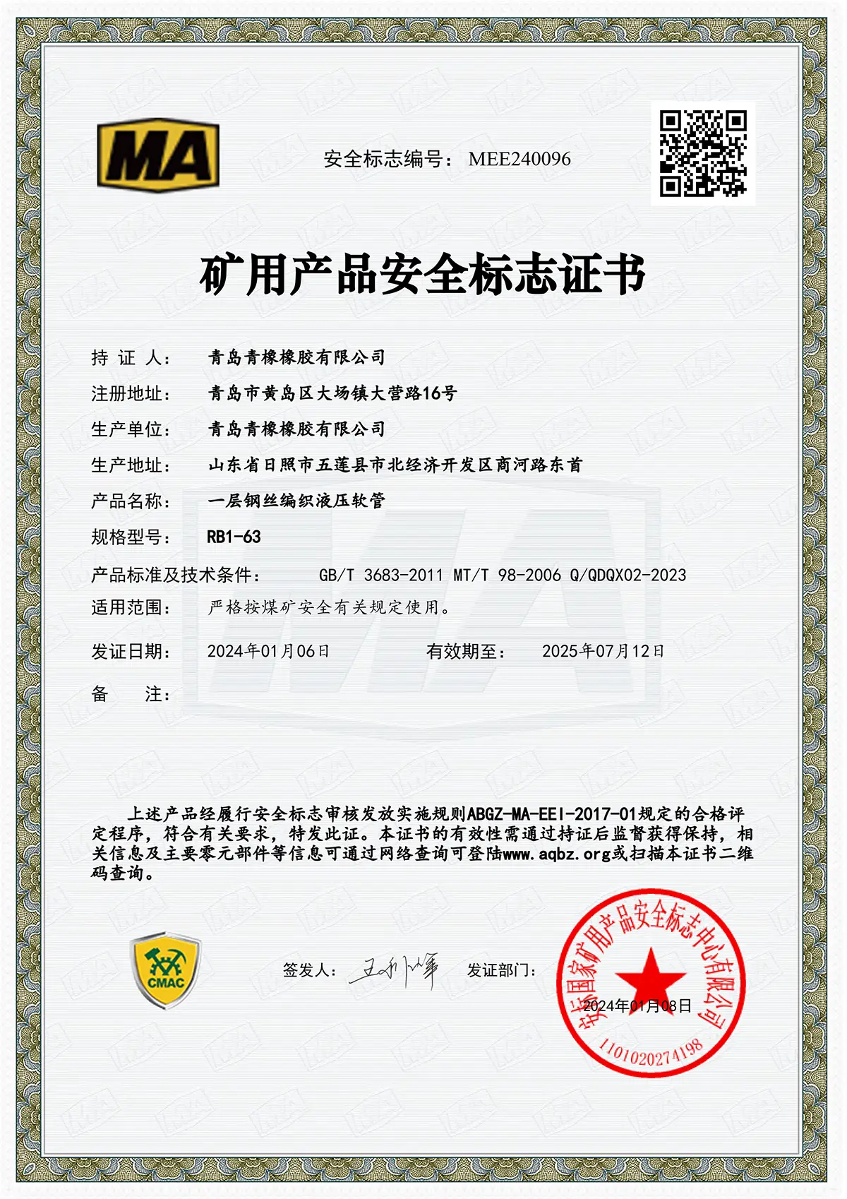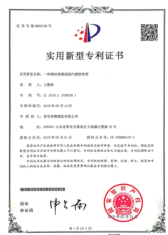 Qingdao Qingflex Hose Factory has the certificates of API 7K, API 16C, API Q1, and is one of the drafting units of Chinese acid frac hose standards